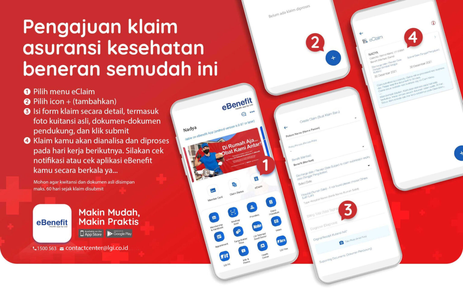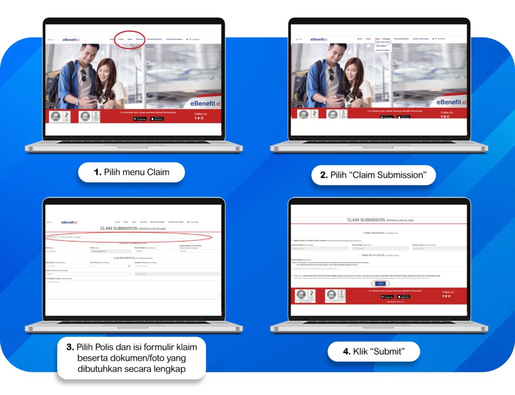*Status pengajuan dapat dilihat di menu “Claim Status”*Untuk mendapat akses ke website ebenefit.id/general, daftarkan email Anda ke tim marketing kami